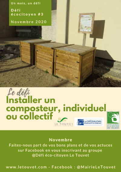 Les conditions sanitaires ne permettent pas de proposer un stand sur le marché ou un éco-atelier pour construire son bac à compost, nous vous donnons rendez-vous sur le groupe facebook « défis éco-citoyens Le Touvet » pour nous faire part de votre expérience de compostage : mise en place de votre composteur, utilisation, avantages, trucs et astuces… ou de vos réticences à en installer un.