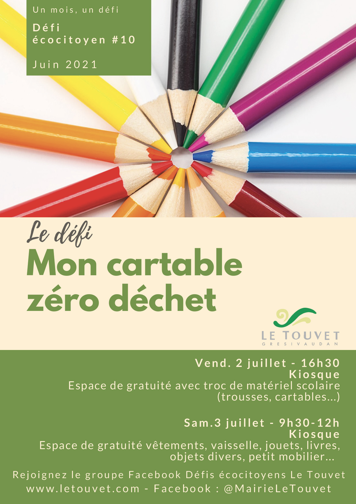 La fin de l’année scolaire approche à grands pas et déjà les listes de fournitures scolaires apparaissent. Pour alléger votre porte-monnaie et faire plaisir tout de même à vos enfants, la commission éco-citoyenne propose un grand troc de trousses, cartables et autres fournitures scolaires le vendredi 2 juillet à 16h30 au niveau du kiosque.