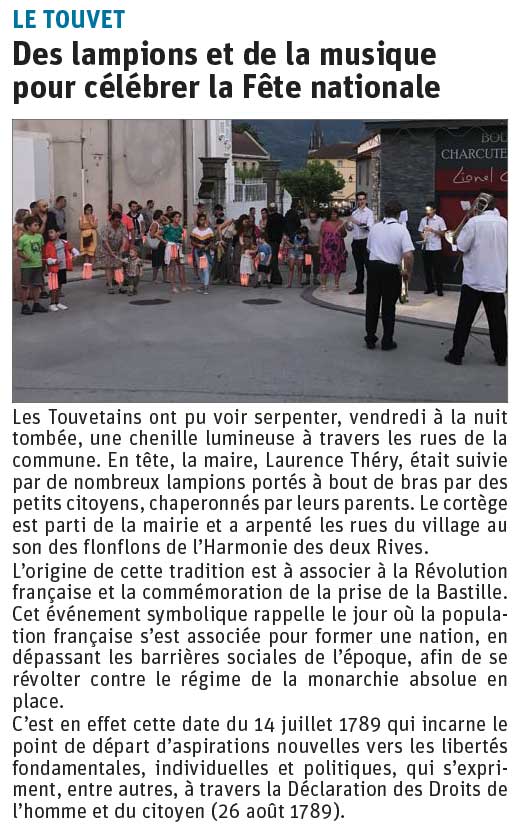 Dauphiné Libéré ed. Grésivaudan (page 14) du 14/07/2019
